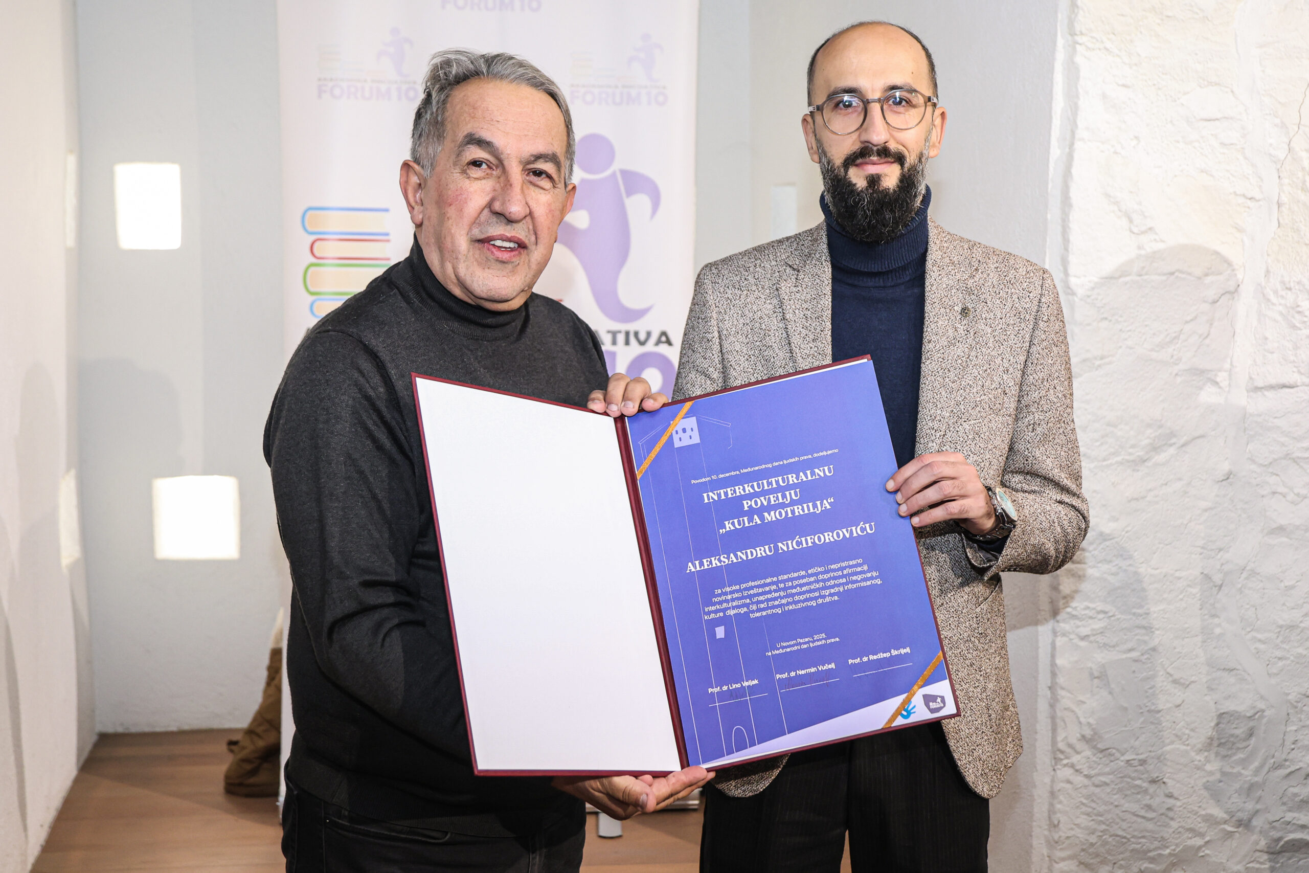 Povelja je dodeljena Aleksandru Nićiforoviću, dugogodišnjem novinaru, za visoke profesionalne standarde, etičko i nepristrasno novinarsko izveštavanje, kao i za poseban doprinos afirmaciji interkulturalizma, unapređenju međuetničkih odnosa i negovanju kulture dijaloga. Njegov rad značajno doprinosi izgradnji informisanog, tolerantnog i inkluzivnog društva. U ime Upravnog odbora Akademske inicijative „Forum 10“, povelju mu je uručio univerzitetski profesor Redžep Škrijelj.